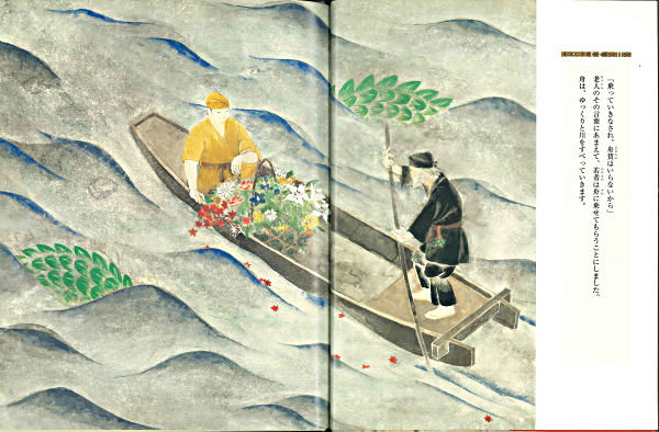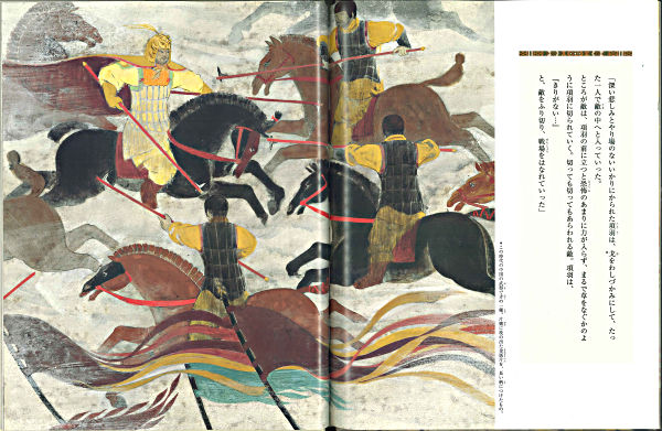 能の「項羽」の物語。中国楚の時代の項羽と劉邦の戦い。項羽の亡霊である老人が舟にのって現われ、花を摘む青年に「虞美人草」のいわれと、自身の最期を語る。「四面楚歌」などの言葉を生んだ有名な戦いの昔語り。