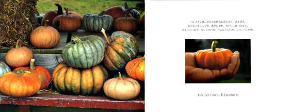 ハロウィーンの人気者、パンプキン。種まきの段階から、農家での収穫の模様、ハロウィーンでの様子など、パンプキンにまつわる一年の様子をつづった硬派な写真えほん。