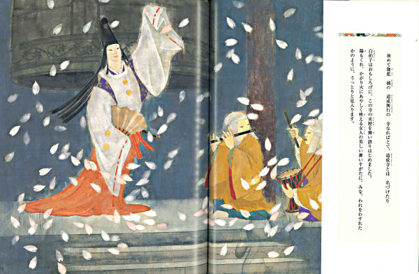 僧に対する純粋な恋ごころが、やがて娘を大蛇の姿にかえていく。道成寺の釣鐘にまつわる、悲恋の伝説を舞台に仕立てた能の舞台を絵本化。「能のえほん」シリーズは、シリーズ6冊になり、全巻、観世流能楽師で、世界を舞台に活躍する片山清司氏が文章を担当しています。