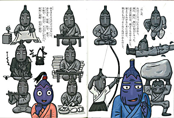山奥の村にすんでいる与太郎じいさんのところに、孫娘の小茄子ちゃんが遊びにきています。「この村の人たちはどうしてあんなにやさしいの。村の人たちにたずねたら与太郎じいさんのおかげだっていってたよ」小茄子ちゃんがたずねると、与太郎じいさんは、わかいころの武勇伝を話しはじめ・・・。子どもたちに大人気のシリーズ。3作目はダジャレ満載の楽しいお話です。