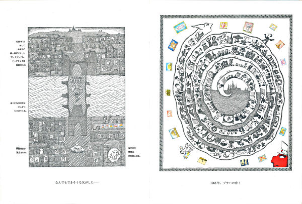 冷戦下のチェコで育った絵本作家の軌跡を描く自伝的絵本。いわれた通りに絵をかき、いわれた通りに考えていた子ども時代。やがて、ロックンロールやビートルズといった自由な世界の音楽が入ってきて、世界は少しずつひらけはじめる。1968年プラハの春。そしてその終わり、自由を夢見るピーターのまえに、かべは厚く、大きくたちはだかっていた。