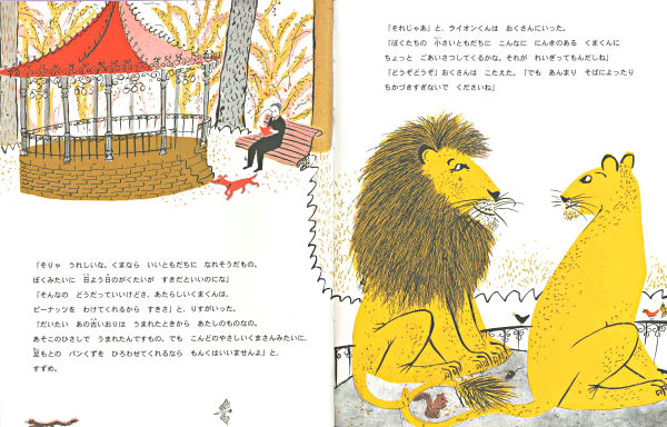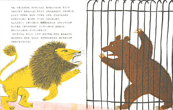 ごきげんなライオンくんがいる動物園に、くまくんがやってきました。ところが、ライオンくんとくまくんは、あうたびに大ごえでうなりあい、ちっともなかよくなりません。ともだちのフランソワくんはそのたびにとてもやさしく、とてもおだやかに、くまくんにはなしかけ、はちみつやおいしいものをあげます。そんなある日、くまくんがおりからにげ出してしまいました!ともだちを信じるってすてき。心のやさしいライオンくんの成長と友情を描いた、人気シリーズ第5弾です。