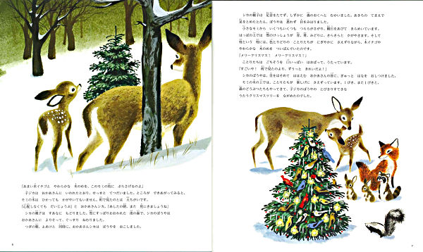 雪の森のなか、子ジカが目を輝かせておかあさんシカのもとにかけてきました。子ジカは町で素敵なクリスマスツリーを見たのです!「ぼくもクリスマスツリーがほしいなぁ」願いをかなえてあげたいおかあさんシカは・・・。ほほえましいシカの親子を描いた「うたうクリスマスツリー」など、クリスマスにまつわるお話や詩が18作品。心あたたまるほのぼのとしたお話ばかりです。クラシカルな絵を楽しみながら、クリスマスまで1話ずつ、ゆっくりと読みすすめてもいいですね。5、6歳から
