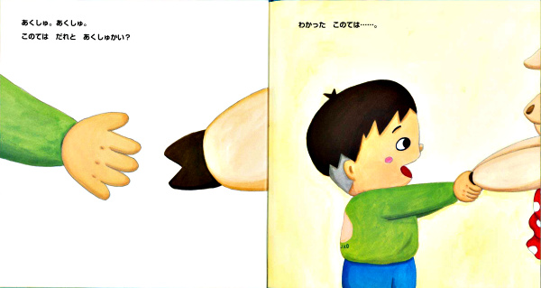 あくしゅ。あくしゅ。このてはだれとあくしゅかい?アイドル、魔法使い、きょうりゅうなど、男の子がいろんな相手とあくしゅしていきます。村上しいこと青山友美のコンビで描く、シンプルであたたかくてたのしい絵本。