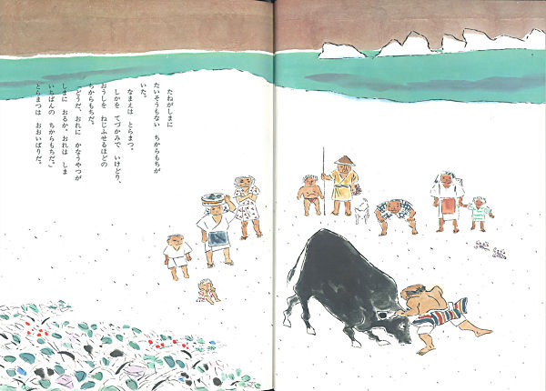 とらまつは、雄牛をねじふせるほどの力持ち。いつも、おれが島いちばんだとおおいばり。ところが、ある日、ほうまんの池に現れた不思議な生きものに釣った魚をうばわれた。そこでつぎの日、とらまつは・・・。