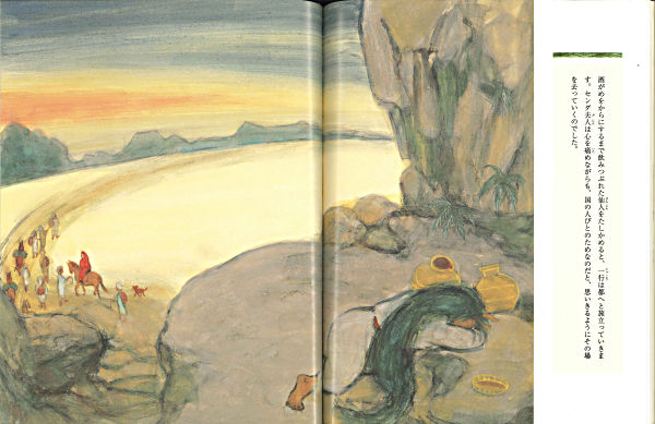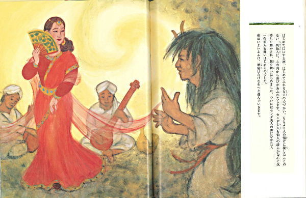 額に鹿の角があり、すさまじい神通力をもつ一角仙人が、雨をつかさどる龍神を岩屋に封じこめてしまいます。雨が降らず、大干ばつになったハラナ国の王様は、美しい聡明なセンダ夫人に仙人の神通力を解く役割を申しつけます。山深くにわけ入り、ようやく仙境にたどりついたセンダ夫人は・・・。