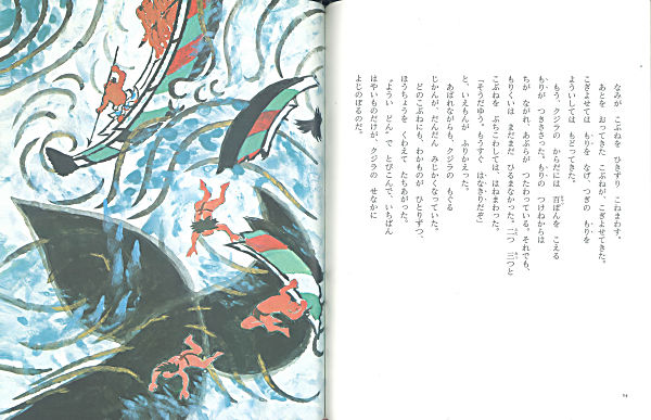 月日が流れ、かつてでんじのもりを背に受けた子クジラが、群れを率いる大クジラとなった。村人から”もりくいクジラ”と呼ばれるこの因縁のクジラに、でんじの後継者、若きそうだゆうが果敢にいどむ。1972年に発行された作品を復刊しました。
