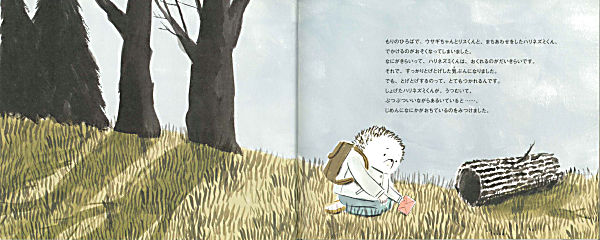 ハリネズミくんは、遅れるのが大嫌い。この日は森の広場に一番乗りできそうになくて、とげとげした気分です。そんな時、広場へ向かう道で手紙を拾いました。「あなたはよろこび、ひかり、こころのなかのきぼう。あなたがいなくなったら、とってもさびしい。あなたのことがだいすきってこと、しっている?」・・・「だれかがぼくのことをすきなんだ」自分へのラブレターだと思ったハリネズミくんは、すっかりごきげんに。ところが、その後ラブレターを落としてしまい、今度はそれを拾ったウサギちゃんが「ハリネズミくん、わたしのことがだいすきなんだわ」と思い込み・・・。微笑ましい勘違いが繰り返された末に、みんなは大切な友だちの存在に気づきます。ラブレターがもたらすあたたかな幸せにあふれたお話です。