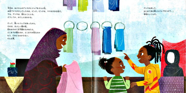 ねえさんが選んだ青いヒジャブ。海のような空のような青いヒジャブ。身につけると、ねえさんはまるでプリンセスみたい。でも、そんなねえさんのヒジャブを悪く言ったり、笑ったりする子もいる。いもうとのファイザーは、ねえさんの姿に、強さと希望を感じ・・・・・・。イスラム教徒の女性が髪の毛をおおうのにつかうヒジャブ。そのヒジャブを身に着けてオリンピックに出場した初めてのアメリカ人選手、イブティハージ・ムハンマドの作品です。さかいめのない、空と海の青のように、偏見や差別のない社会を願って書かれた作品です。