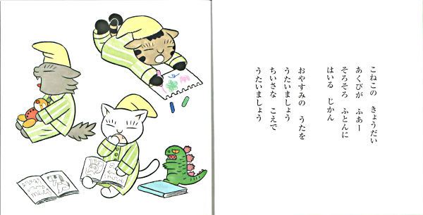 あくびがでたら、そろそろふとんにはいるじかん。たのしいゆめをみるまでを、1から10でかぞえます。可愛いスリーブケース入りの「こねこのきょうだいかぞえうた」絵本シリーズ3冊セットもあります。