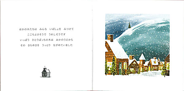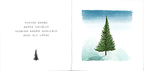 クリスマスの前の晩、ひとりぼっちのもみの木が、丘の上にぽつんと立っていました。ほかの仲間たちは、ふもとの町で居場所を見つけて、楽しそうです。その夜、一筋のあかりがもみの木のもとをおとずれます。サンタクロースに運ばれてもみの木がたどり着いた先は、ふもとの町の広場の真ん中でした。夜空に飛びたつ前、サンタクロースはこう言いました。「みなさんクリスマスおめでとう。そしてみなさんすてきな夜を」