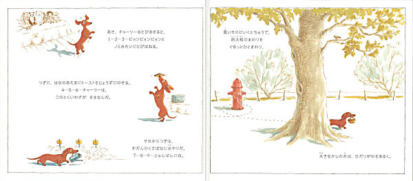 犬のチャリーは朝起きると、まずピョンピョン飛びはね、次に鼻の頭にトーストを乗せ、それから順番に花の水やりをします。チャリーは毎日、こだわりの日課を繰り返します。そうしないと、何かひどいことが起こる気がして怖かったから。ある朝、友だちが動けなくなったと知らせが入り、チャーリーは助けに向かいます。ところが、急ぐあまり、いつもの日課通りにはいきませんでした・・・。