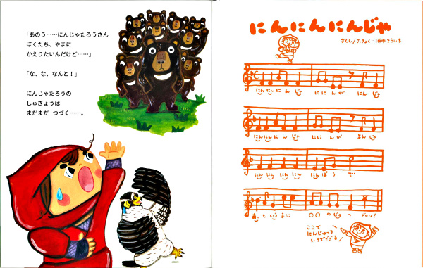 せっしゃは、にんにんにんじゃ、にんじゃたろう。しゅぎょうちゅうでござる。今日も修行に一生けんめいな、にんじゃたろう。でも、手裏剣も、すいとんの術も、隠れ身の術も、なかなかうまく出来なくて・・・そんな時、助けをもとめる声が!にんじゃたろう、どうする!?子どもたちが大好きな忍者が主人公。不器用だけれど、だれかの役に立ちたいにんじゃたろうを、子どもたちもきっと応援したくなるでしょう。元保育士の浦中さんが、子どもたちとふれあうなかで作った絵本です。巻末には「にんにんにんじゃのうた」の楽譜を掲載。いっしょに歌っておどってにんじゃになろう!3歳から