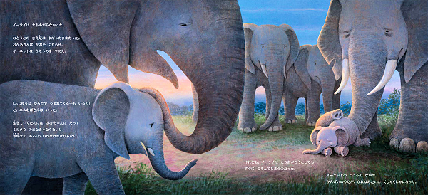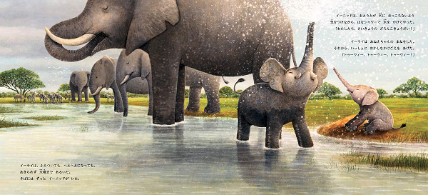 ゾウのイーニッドは、かんげいの歌をうたいます。今日からおねえちゃんになるのです。でも、うまれてきたおとうとのイーライは前足がまがったまま、なかなか立ちあがることができなくて・・・シリーズ既刊『チャーリー、こっちだよ』『はねをならべて』につづく、実話をもとにした、信じあう家族の物語。きょうだいだからこそうまれるふくざつな気持ちと、それでも離れることのない絆を描きます。