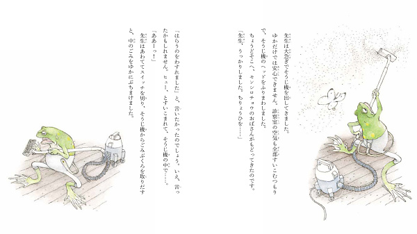 めずらしく手が空いたキダマッチ先生は、せっせと部屋のそうじをはじめました。実は先生、むかし患者をそうじ機で吸いこんでしまったことがあって・・・・・・。おなかのいたいモンシロチョウや、胸がドキドキするという野ウサギのばあさん、丸まれなくなったダンゴムシなど、ちょっとクセのある患者たちを、今回もキダマッチ先生がユニークな方法で治療します!