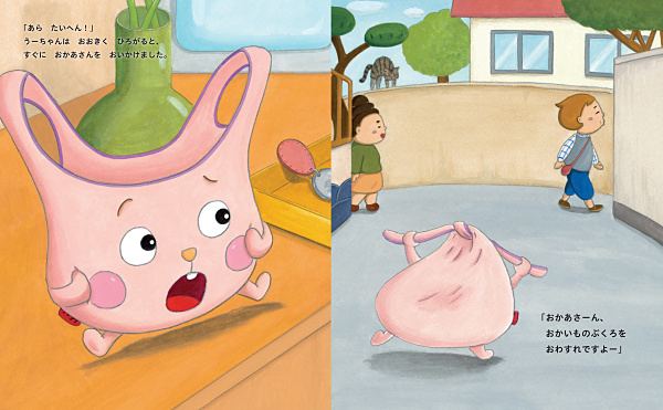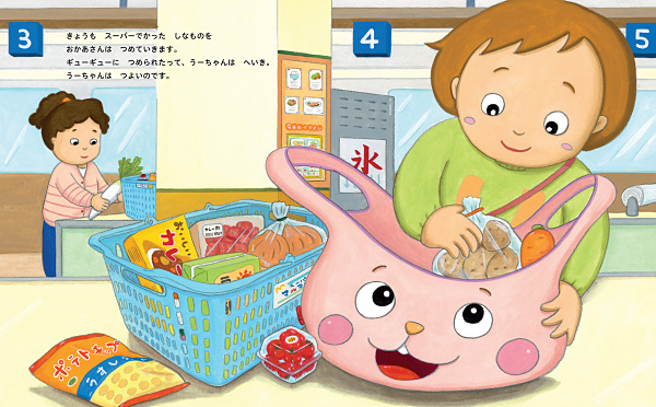 おかあさんが買い物に出かけるとき、おかいものぶくろのうーちゃんは、いつもいっしょです。スーパーで買った品物をギューギューにつめられたって、うーちゃんは平気。うーちゃんは強いのです。ところがある日、おかあさんがうーちゃんをおいて、買い物に出かけてしまいました。うーちゃんはあわてて、「おかあさーん!」と呼びながら追いかけますが・・・・・・。身近なマイバッグが主人公。がんばりやさんのうーちゃんを応援したくなる、たのしい絵本です。4歳くらいから