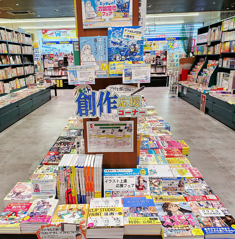 イラスト、マンガの創作をお助けする本を集めました!特典付きのフェアも実施中!