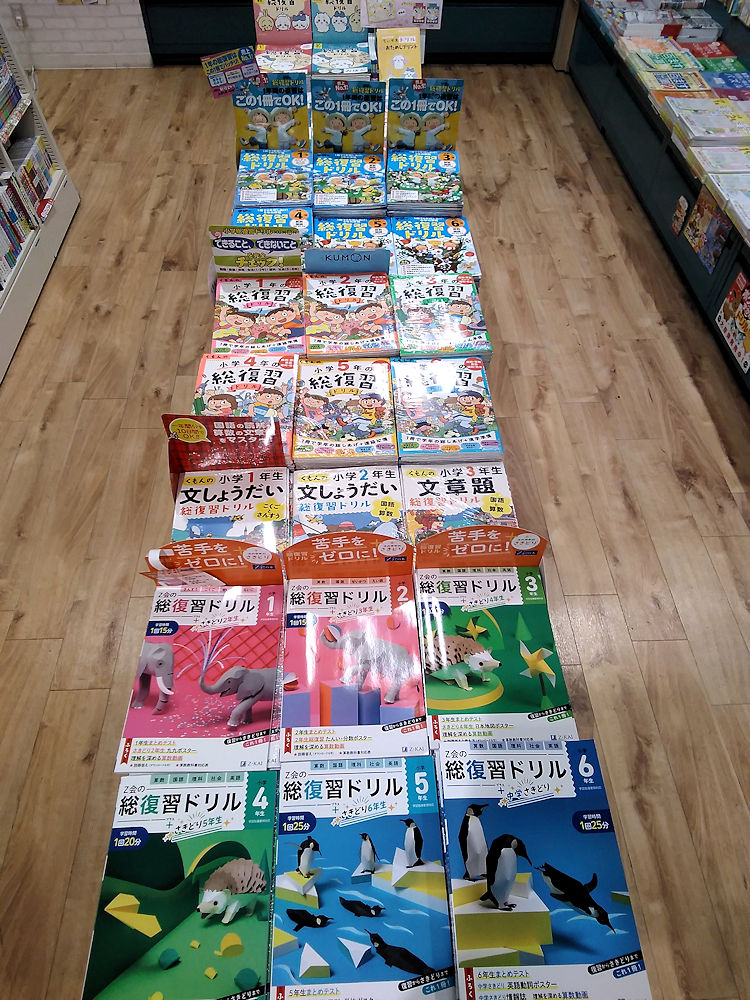 総復習ドリル各社入荷しました! 今年はちいかわドリルに進級おめでとうシールつきです。