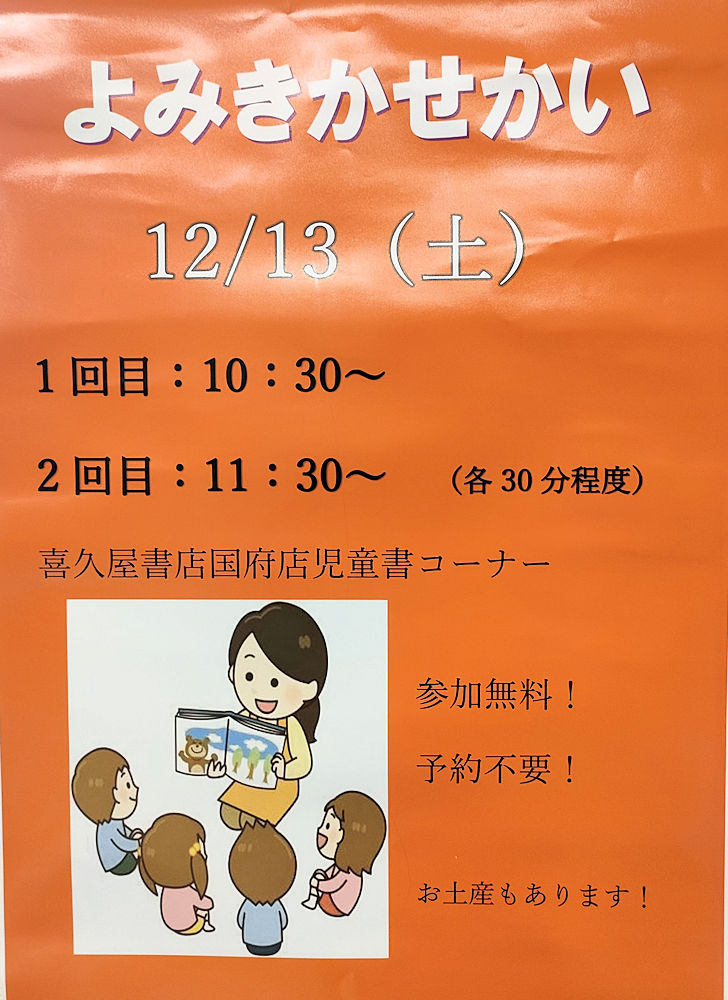 国府店では定期的におはなし会を開催しています。(参加料は無料です。)